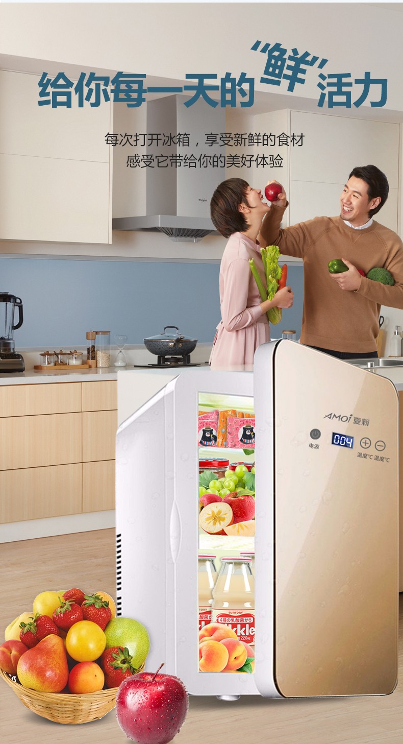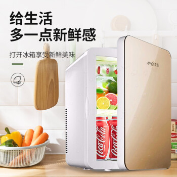 Amoi(Amoi)車載冷蔵庫ミニ冷蔵庫車家兼用小型家庭用寮の寝室暖房器果物化粧品の漢方薬冷蔵保存保存10 Lゴールド(単核機械タイプ)車家兼用