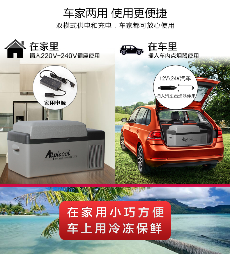 Alpicool、車載冷蔵庫圧缩機15 L-20 L氷結小冷蔵庫、車家兼用ミニ便利剤母乳冷凍直通-20度15 L-220 V機械温控純家庭用冷蔵庫