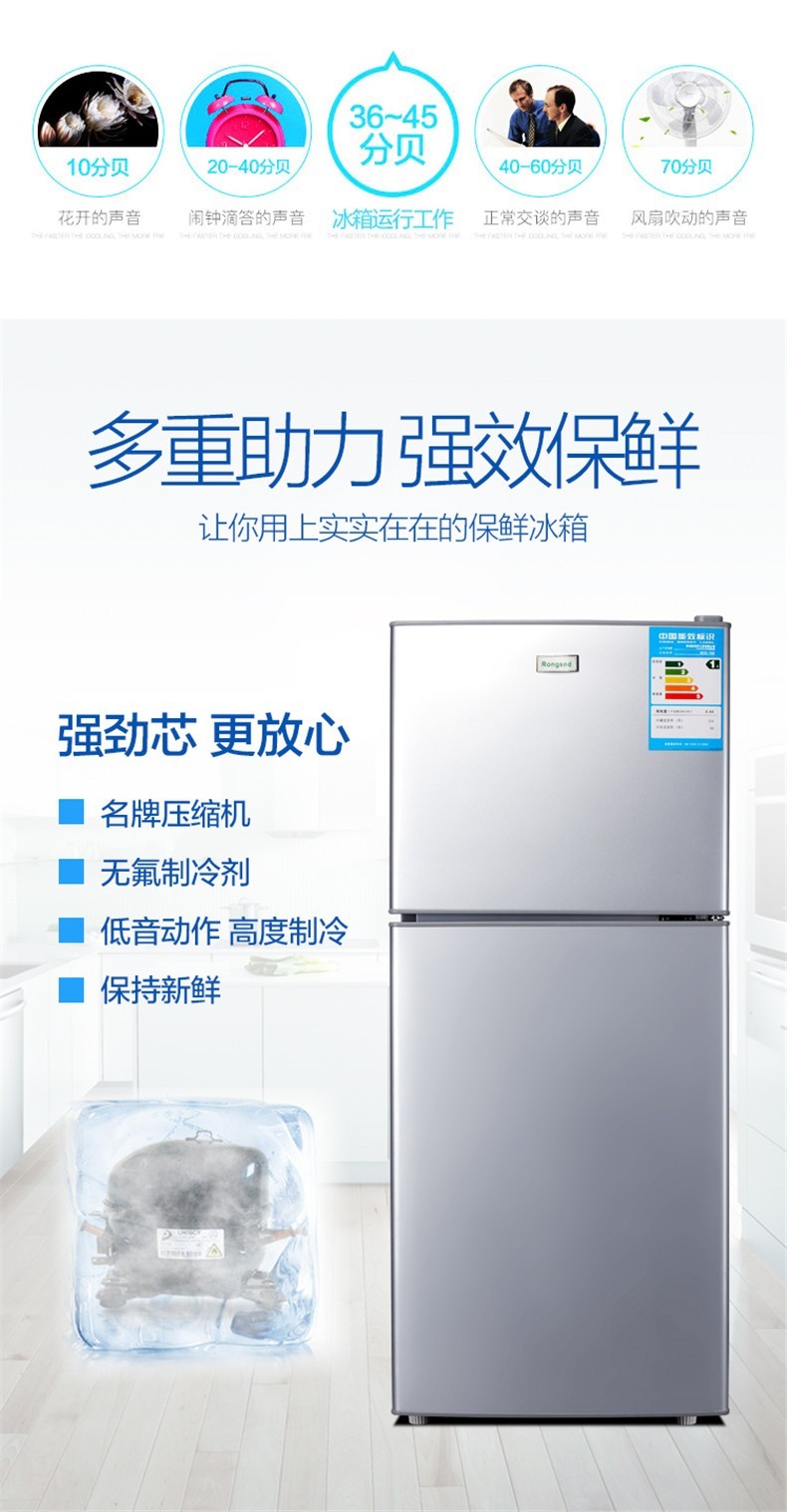 広東容音生活科学技術有限公司の一級機能家庭用冷蔵庫の省エネ小型家庭用電気冷蔵庫三つの冷蔵庫の風冷蔵カラカラカラドアガラスの小さ電冷蔵庫の静音118 Lシングニ普通のタリプの銀色